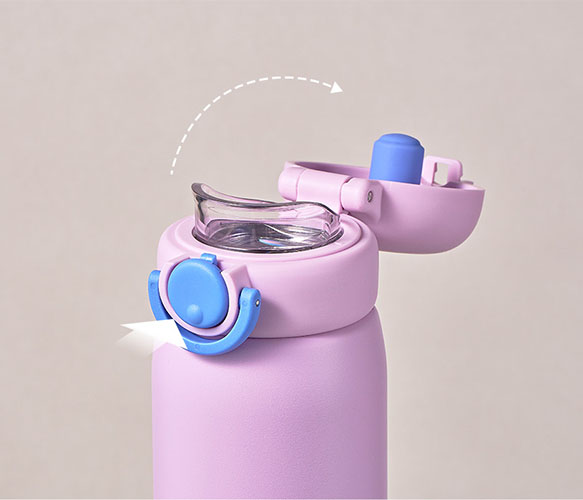 Saat anak memasukkan ke dalam tas, Anda dapat mengamankannya dengan double-locking ring untuk mencegah air bocor dikarenakan tidak sengaja menekan tombolnya